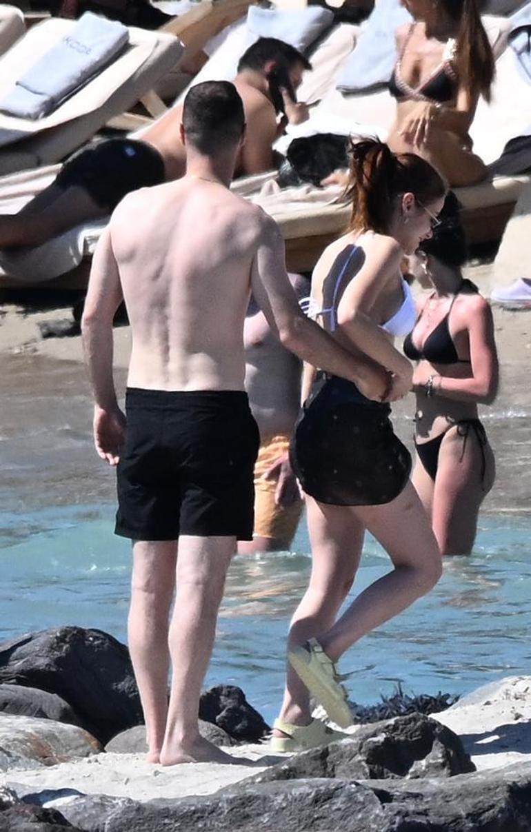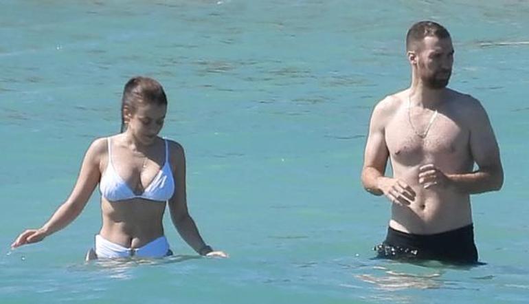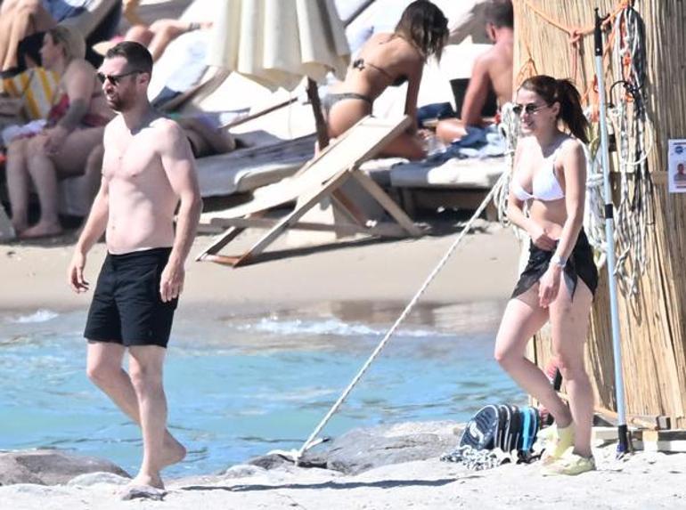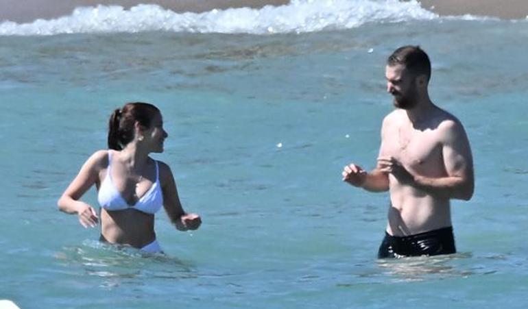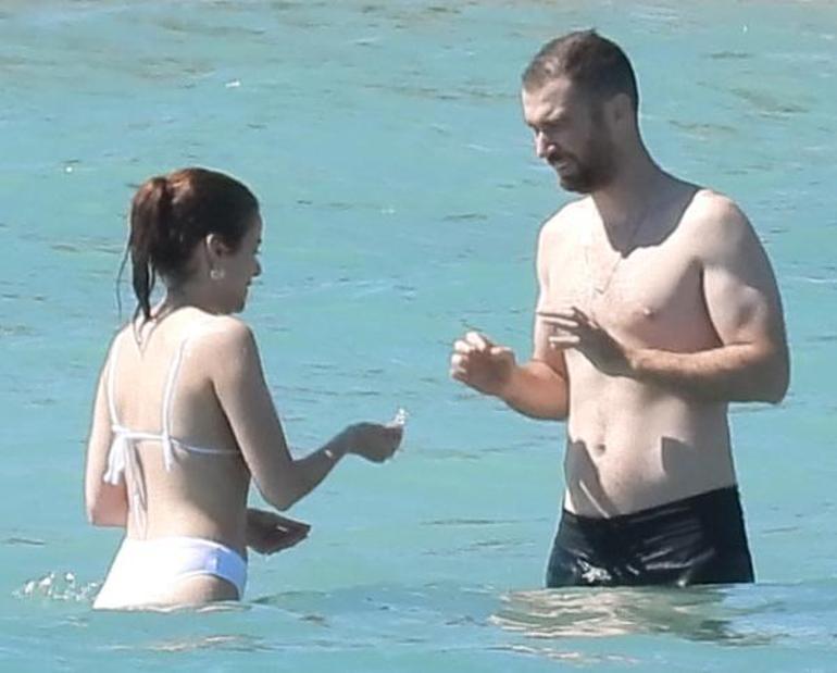 Deniz içerisinde birbirlerine su atarak şakalaşan İkili, daha sonra localarına geçerek güneşlenmeye devam ettiler.