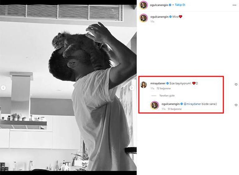 Sosyal medya hesabını aktif olarak kullanan Oğulcan Engin, kedisi Miro'yu sevdiği anları takipçileriyle paylaştı. Engin'e kısa sürede binlerce beğeni ve yorum gelirken; Miray Daner de kayıtsız kalamadı.
