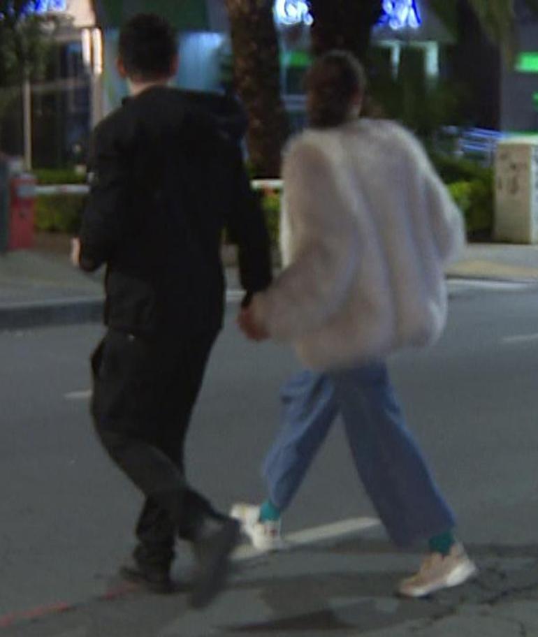 Mekandan bir hanımefendi ile ayrılan Okan Çabalar, gazetecilerin görüntü almasıyla kız arkadaşının yüzünü saklamasının ardından; "O heyecanlı şu an. Bir şey yok gel buraya" diyerek yanına çağırdı.
