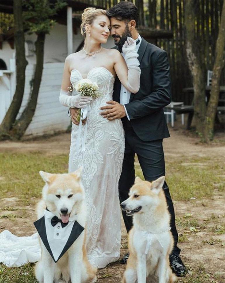 Düğün töreninde köpeklerine de gelinlik ve damatlık giydiren ikiliden Yasemin Sancaklı'nın, düğünün ardından soyadına Aksoy'u da ekmesi dikkatlerden kaçmadı.