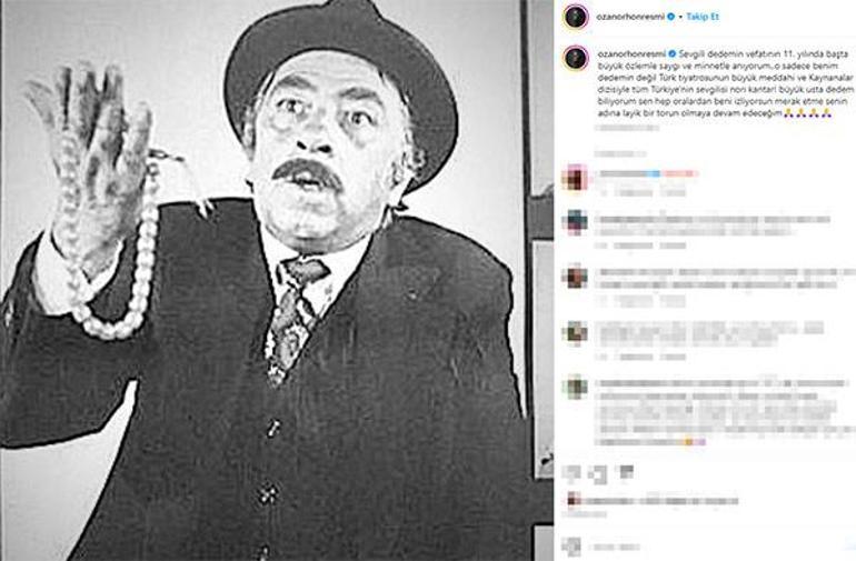 Müzik dünyasında 90'lara damga vuran popçulardan Ozan Orhon, 'Kaynanalar dizisinde canlandırdığı 'Nuri Kantar' karakteriyle hafızalara kazınan, 12 Şubat 2013 tarihinde aramızdan ayrılan dedesi Tekin Akmansoy'un fotoğrafını sosyal medya hesabından paylaştı.