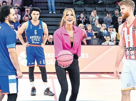 Anadolu Sağlık Merkezi Hastanesi ve Anadolu Efes Spor Kulübü iş birliğinde gerçekleştirilen proje için Anadolu Efes SK- Olympiacos karşılaşmasının hava atışını yapan manken, “Özellikle 40 yaşın üstünde yılda bir kez mamografi çektirmek erken tanı için çok önemli” çağrısında bulundu. -MESUT YILMAZ