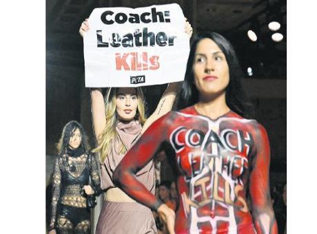 Deri tasarımlarıyla ünlü Coach’un dünkü defilesinde ise ilginç bir an yaşandı. Hayvanların her türlü istismar edilmesine karşı çıkan, dünyaca ünlü hayvan hakları örgütü PETA’nın iki kadın üyesi, defilede podyuma çıkarak, mankenlerin arasına karıştı. Kadınlardan biri, “Coach: Leather kills” (Coach: Deri öldürür) yazılı bir pankart açtı. Vücudu boyanmış diğer protestocunun da göğsünde aynı yazıyı taşıdığı görüldü. İki aktivist de, daha sonra görevliler tarafından dışarı çıkarıldı.