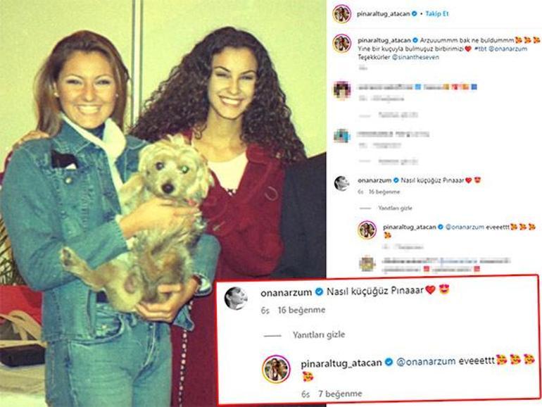 Takipçiletrni yıllar öncesine götüren Pınar Altuğ, 20 binden fazla beğeni alan paylaşıma, 'tbt' notuyla birlikte "Arzum bak ne buldum? Yine bir kuçuyla bulmuşuz birbirimizi" mesajını yazdı.