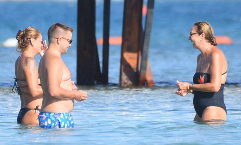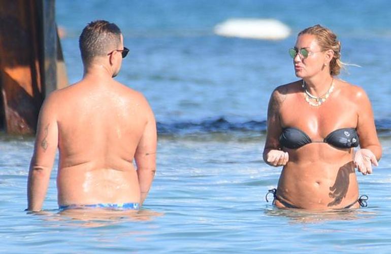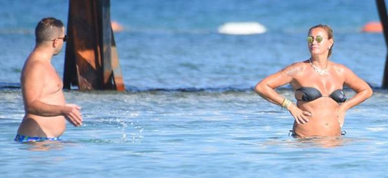 Yaz aylarının büyük bir çoğunluğunu Çeşme’de geçiren ünlü çift, önceki gün bir arkadaşlarıyla birlikte denizin içinde koyu bir muhabbete daldı.