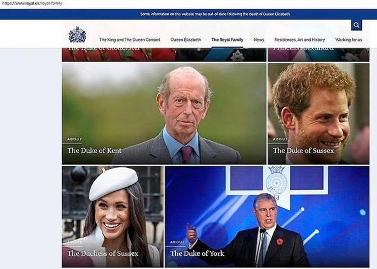 DailyMail'de yer alan habere göre; tıklayanları Sussex Dükü ve Düşesi'ne adanmış sayfalara götüren bağlantılar daha önce kıdemli kraliyet üyelerinin altında ve ailenin küçük üyelerinin üstünde olmak üzere sayfanın ortalarında yer alıyordu. Meghan ve Harry'nin adları, ilk kez sıranın ortalarına düşürülmesinin öncesinde ise şimdilerde Galler Prensi ve Prensesi unvanlarını alan Prens William ile Kate Middleton'ın hemen ardına yazılmıştı.