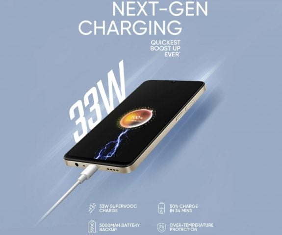 Narzo N53’ün arka kısmında iki kamera ve bir flaştan oluşan üç daireli bir kamera adası mevcut. Ön tarafta çentikli LCD bir ekran öne çıkıyor. N53, gücünü 33W şarj desteğine sahip 5.000 mAh pilden alacak. Bu pil 34 dakikada %50’ye kadar şarj olabiliyor.