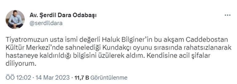 Kadıköy Belediye Başkanı Şerdil Dara Odabaşı, "Tiyatromuzun usta ismi değerli Haluk Bilginer’in bu akşam Caddebostan Kültür Merkezi’nde sahnelediği 'Kundakçı' oyunu sırasında rahatsızlanarak hastaneye kaldırıldığı bilgisini üzülerek aldım. Kendisine acil şifalar diliyorum" demişti.