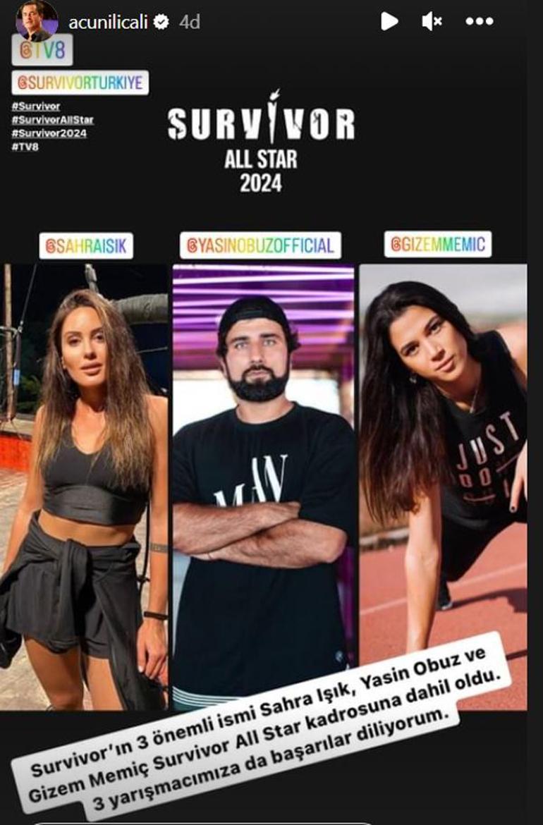 Acun Ilıcalı, sosyal medya hesabından yaptığı paylaşımda; Sahra Işık, Yasin Obuz ve Gizem Memiç'in yeni sezonda yer alacağını açıklayarak şu ifadeleri kullandı: