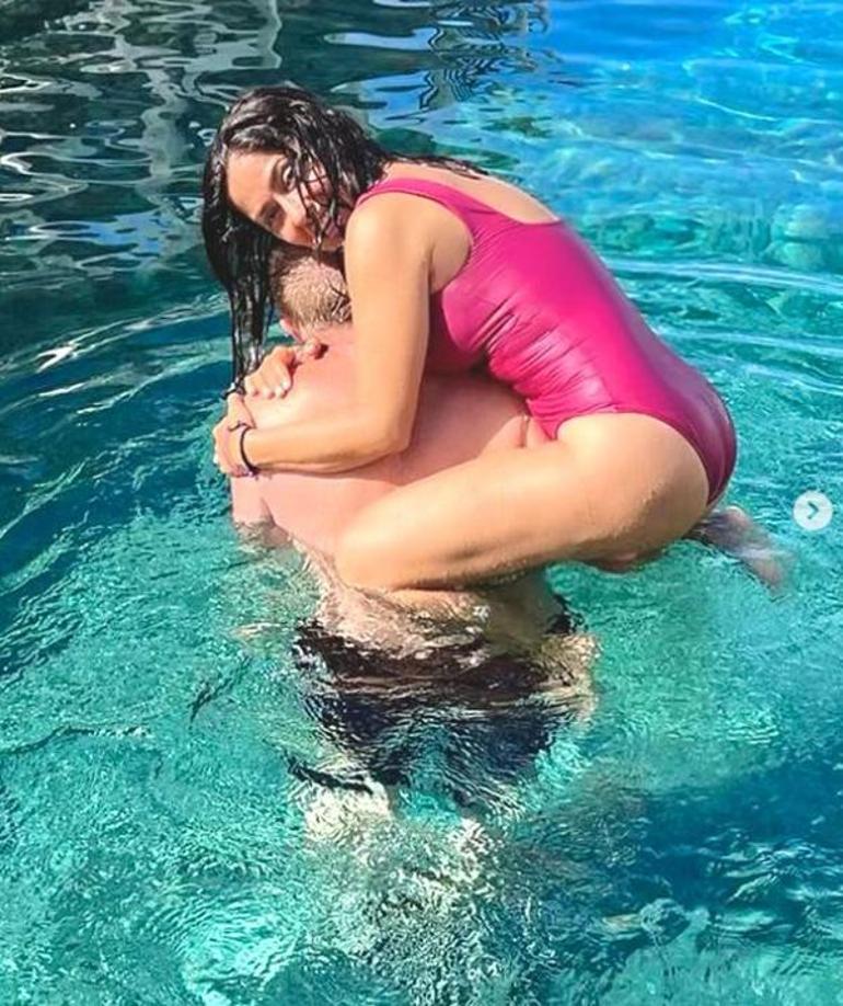 Ünlü isim, son olarak 25.8 milyon takipçisi bulunan sosyal medya hesabından paylaştığı tatil pozlarıyla gündeme geldi. Pembe mayosuyla kamera karşısına geçen ünlü ismin, peş peşe paylaştığı karelerden birinde eşinin sırtına çıktığı görüldü.