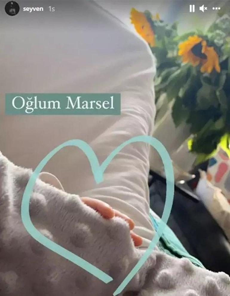 Instagram hesabından kalp içinde yeni doğan oğlunun elini paylaşan Selen Seyven, "Oğlum Marsel" notunu düşmüştü.