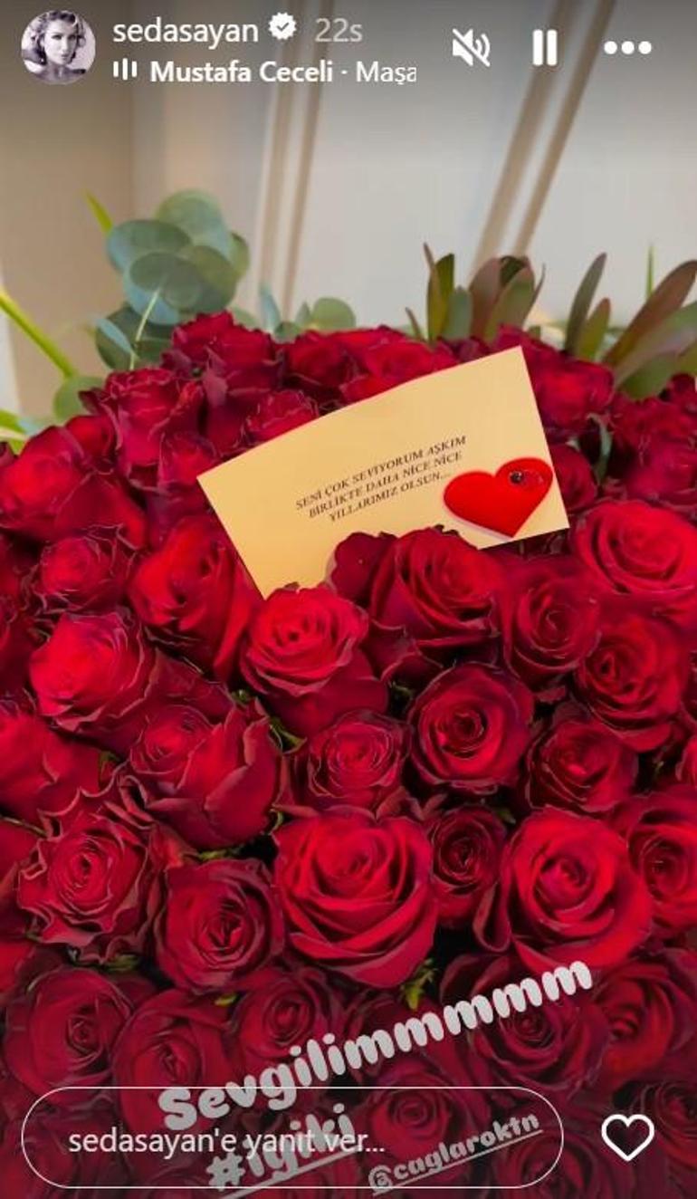 Instagram'da 3,2 milyon takipçisi bulunan Sayan, eşinin gönderdiği kırmızı gül buketini sevenlerinin beğenisine sundu.