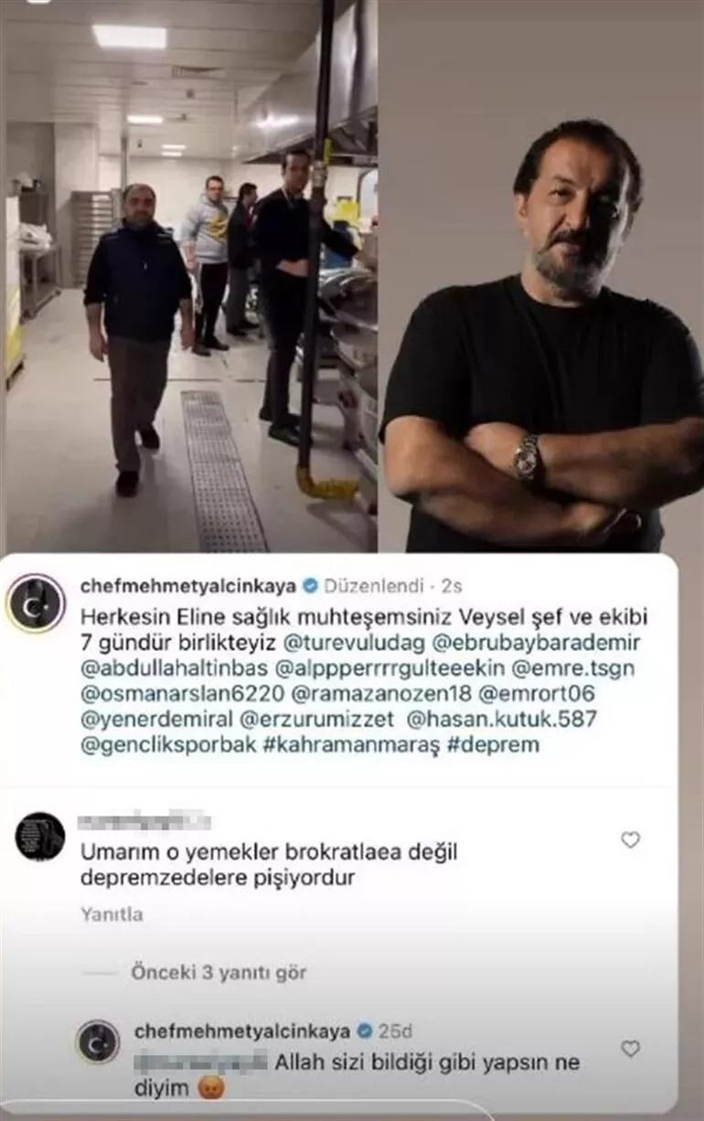 Geçtiğimiz günlerde sosyal medyada "Herkesin eline sağlık, muhteşemsiniz. Veysel Şef ve ekibi yedi gündür birlikteyiz" notu ile sahra mutfağından paylaşım yapan ünlü şef, kendisine yapılan yorum karşısında adeta çileden çıkmıştı.