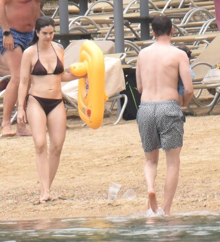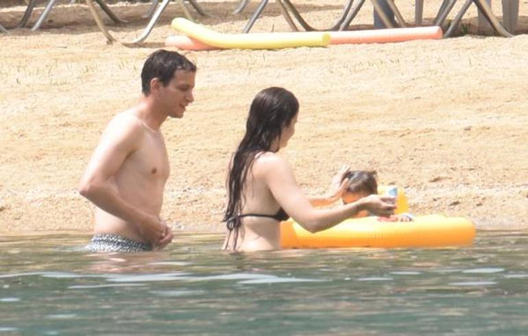 Bir süre daha denizde eğlenen ünlü çift, daha sonra kızlarını kucaklarına alarak oradan ayrıldı. Lara Paşalı'nın, doğum kilolarından kurtulması da dikkat çekti.