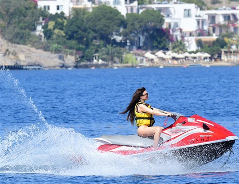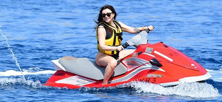 Siyah bir mayo giyen, formda görüntüsü ile dikkatleri üzerine çeken 45 yaşındaki oyuncu ve şarkıcı, jet-ski keyfi yapmıştı.