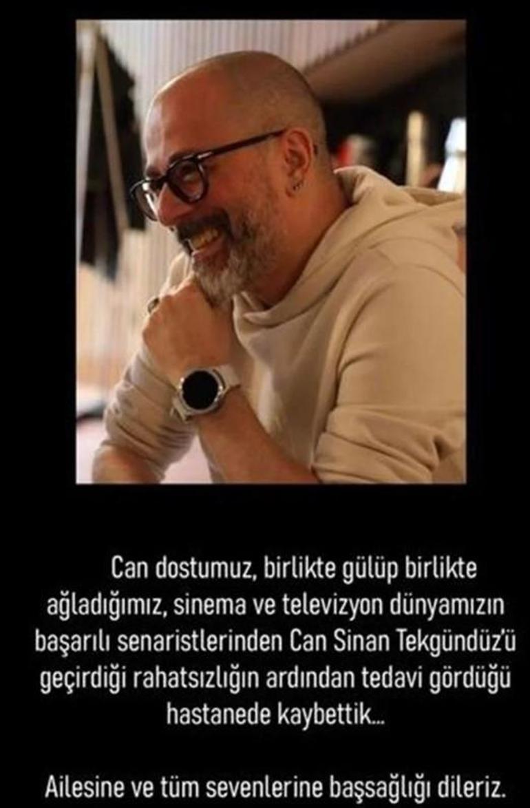 Sinema ve televizyon dünyasını başarılı senaristlerinden Can Sinan Tekgündüz uzun süredir tedavi gördüğü hastanede vefat etti.
