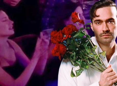 Sevgilisinden habersiz kulise gelerek sürpriz yapan oyuncu, sahne sonuna kadar Mert Demir'i dinledi ve şarkılarına da eşlik etti.