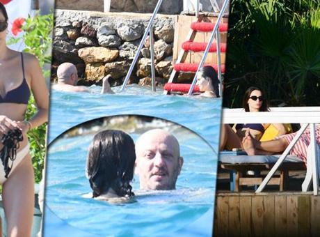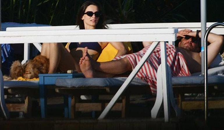Deniz keyfi yapan aşıklardan Keskin, basın mensuplarına görüntü vermek istemedi. Sevgilisi şezlonguna geçip bikinisini değiştirirken, Keskin bir süre daha suda kalmaya devam etti.