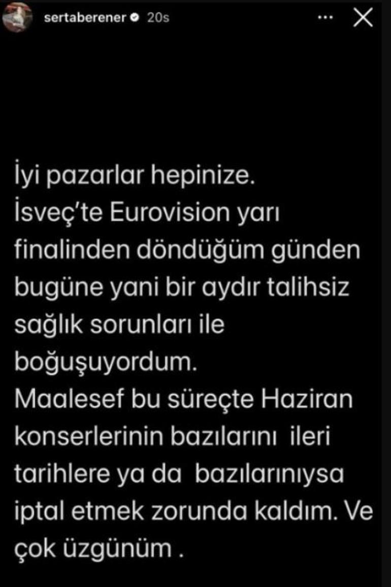 Erener paylaşımında şu ifadeleri kullandı: