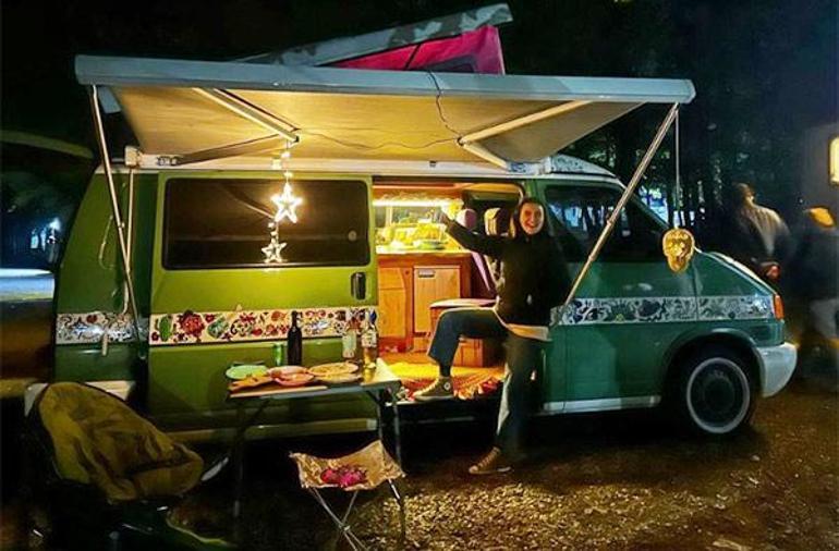 Yemek masasını da kuran oyuncu, karavanı önünde çektirdiği fotoğrafı, sosyal medya hesabından “Prenses sezonu açtı valla” notuyla paylaşmayı ihmal etmedi.