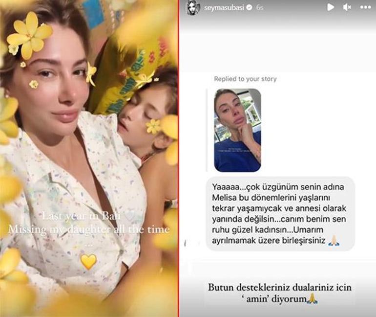 Tüm bunların ardından 32 yaşındaki Şeyma Subaşı, 2013 yılında kucağına aldığı kızı Melisa ile ilgili yaptığı paylaşımlarla adından söz ettirdi. Kızının kendisine sarılıp uyuduğu bir videoyu 3 milyon takipçisi bulunan Instagram hesabının hikayeler bölümünden yayınlayan Subaşı, "Geçen sene Bali... Kızımı her zaman çok özlüyorum" diye yazdı.