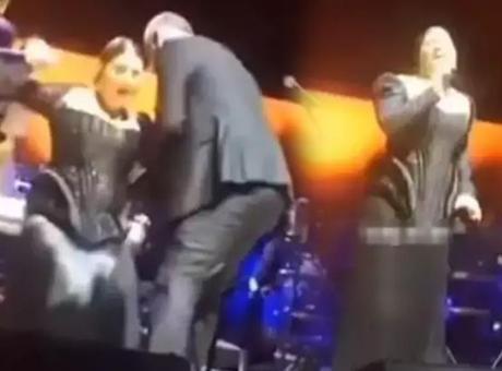 Bir süre yerden kalkamayan ünlü sanatçı, 2 kişinin yardımıyla zor bir şekilde ayağa kalkabildi.