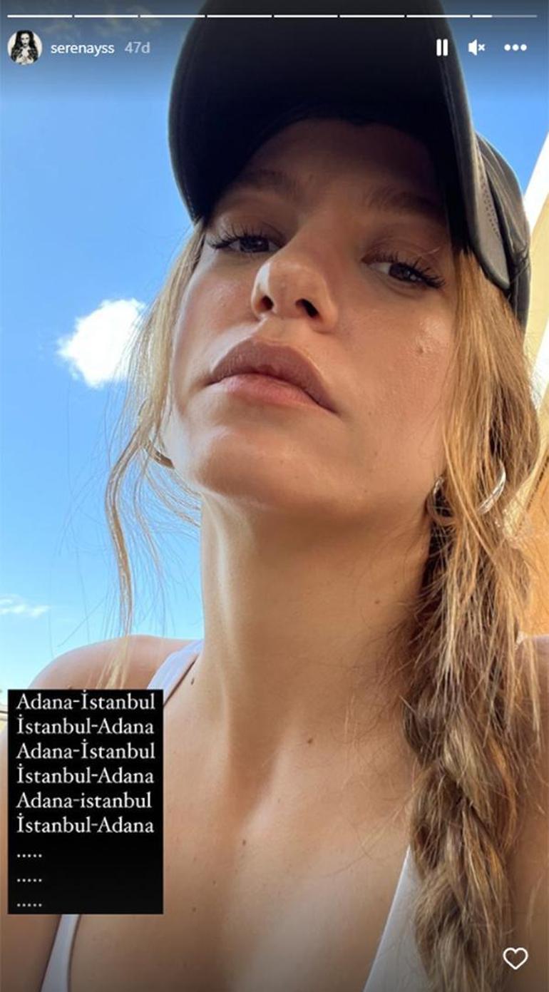 Şimdilerde 'Şahmeran' adlı internet dizisiyle ekranlara dönmeye hazırlanan ve set nedeniyle Adana-İstanbul arası mekik dokuyan Serenay Sarıkaya, geçtiğimiz haftalardaçektiği selfieyi 'Adana-İstanbul... İstanbul-Adana' notuyla takipçilerinin beğenisine sunmuştu. Şapkasıyla poz veren ünlü ismin fotoğrafı, büyük ilgi görmüştü.