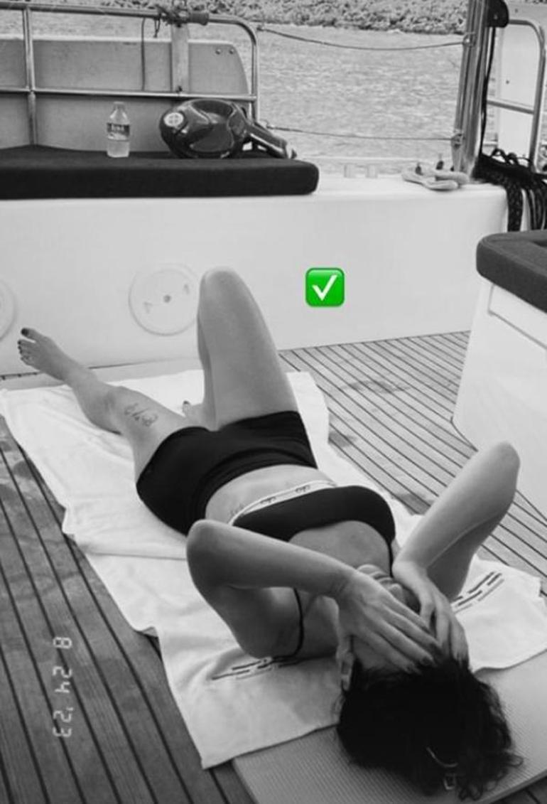 Sayfasının hikayeler bölümünden teknede çekilen pozlarını peş peşe yayınlanan Simge, fit haliyle kısa sürede sosyal medyada gündem oldu.