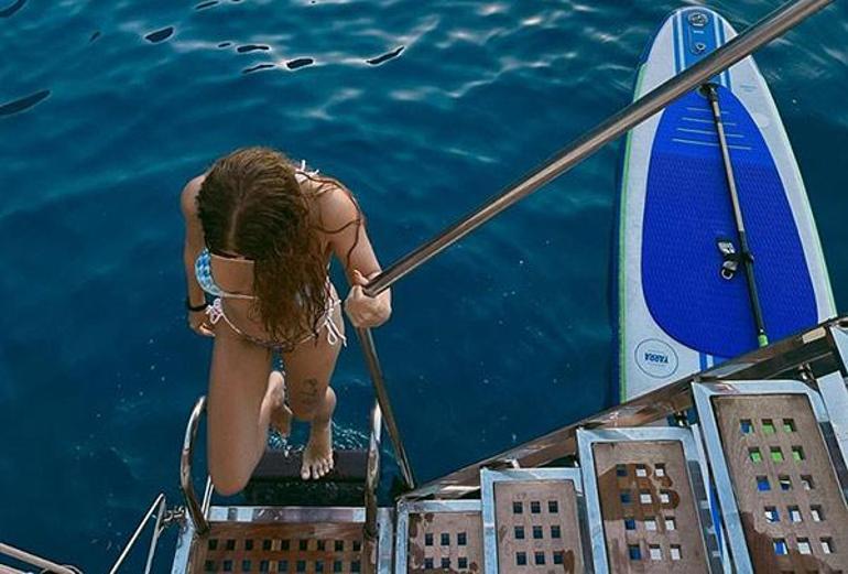 Galatasaray'ın yıldızı Mauro Icardi'nin gollerinden sonra stadyumda çalan 'Aşkın Olayım' parçası dillerden düşmeyen Simge Sağın, arkadaşlarıyla birlikte tekne turuna çıktı.
