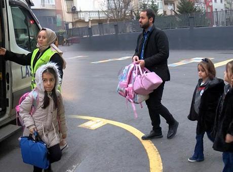 Okullardaki 2 haftalık yarıyıl tatilinin ardından yaklaşık 20 milyon öğrenci bugün ders başı yaptı. Ders zili çalan okullardan birisi de Ümraniye’deki Necmettin Öztürk İlkokulu’ydu. Aileleriyle okula gelen öğrenciler erken saatlerden itibaren okul bahçesinde toplanmaya başladı. Kimi öğrenciler anne ve babasıyla okula gelirken kimileri ise servis kullanmayı tercih etti.