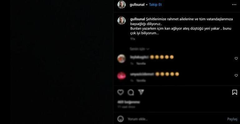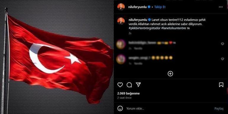 "İki gündür kapkaranlığız 12 şehidimiz var. Bu ateş hepimizin yüreğini yakar. Yüreğimiz kan ağlıyor... Şehitlerimize, Allah'tan rahmet dilerken, Tüm acılı ailelerine, asker yakınlarına sabırlar diliyorum."