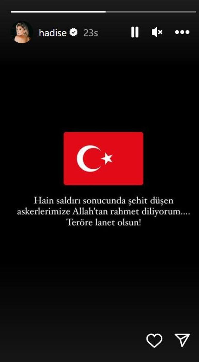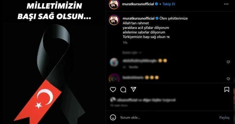 "Ölen şehitlerimize Allah'tan rahmet, yaralılara acil şifalar, Ailelerine sabırlar diliyorum. Türkiye'mizin başı sağ olsun."