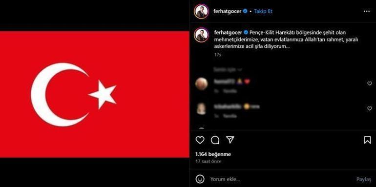 "Şehitlerimize yine içimiz yandı. Yakınlarına sabırlar diliyorum. Ülkemizin başı sağ olsun."