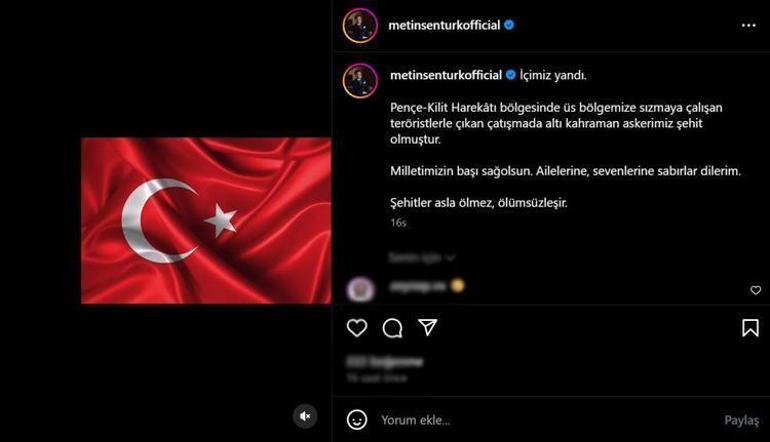 Milli Savunma Bakanlığı, Irak'ın kuzeyinde bölücü terör örgütü mensupları tarafından yapılan saldırı ve ardından yaşanan çatışmada 12 askerin şehit olduğunu duyurdu. Acı haber sonrası ünlü isimlerden peş peşe taziye mesajları geldi.