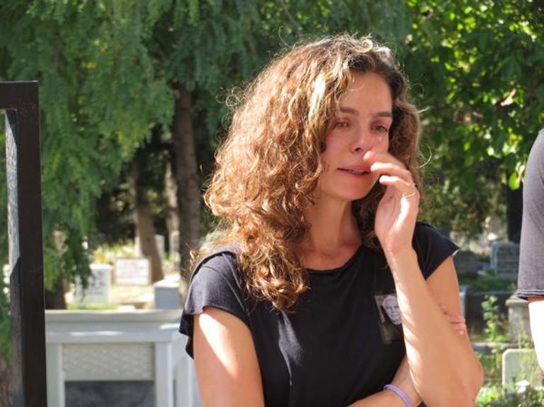 Cenazede gözyaşlarına hakim olamayan Özge Özpirinçci'yi, eşi Burak Yamantürk ve oyuncu arkadaşları teselli etti.