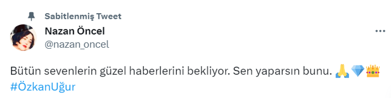 Sanat camiasından da Özkan Uğur'a destek gecikmedi. Ünlü dostları şarkıcı için art arda geçmiş olsun mesajları yayınladılar.