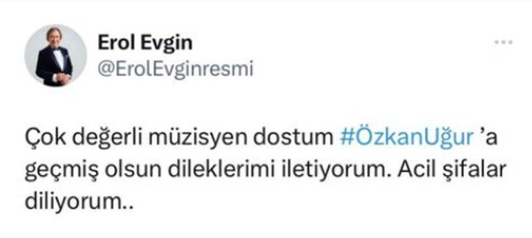 Çok değerli müzisyen dostum Özkan Uğur’a geçmiş olsun dileklerimi iletiyorum. Acil şifalar diliyorum...