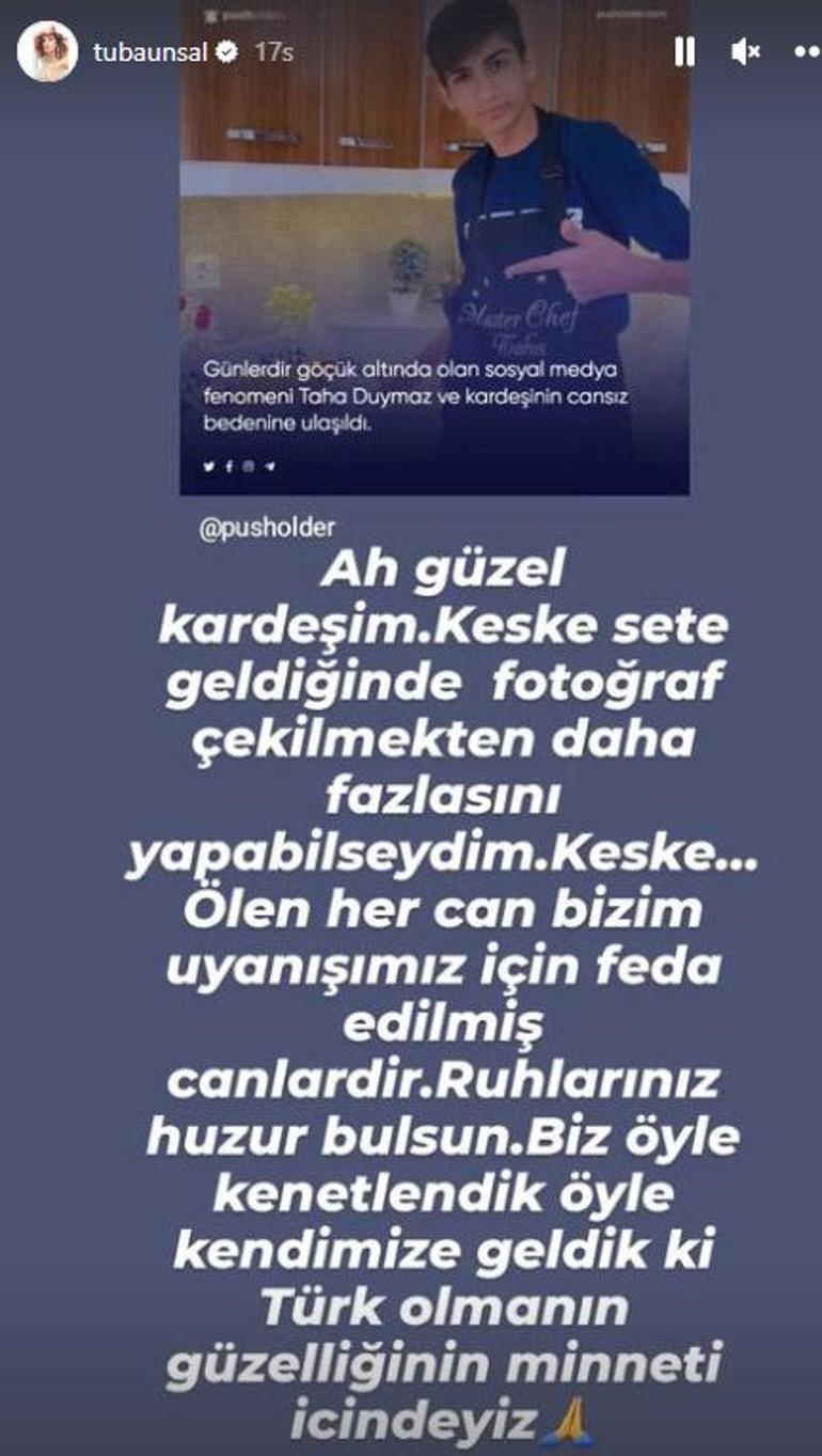 Deprem felaketinin ilk gününden itibaren Taha'dan gelecek iyi haberi bekleyen abla Semiha Duymaz, "Kaybımız büyük. Ailem ve ben bu süreçte yanımızda olan, olmak isteyip olmayan, telefonla ve sosyal medya aracılığıyla yanımızda olan herkese teşekkür ederiz. Özellikle belirtmek isterim ki Instagram hesabımı kapatıyorum. Bu son paylaşımım olacak. Buradan sonra paylaşılan hiçbir şey beni ve ailemi temsil etmiyor. Herkesten Allah razı olsun. Allah bizlere ve sevenlerine sabır versin" mesajını yazdı.