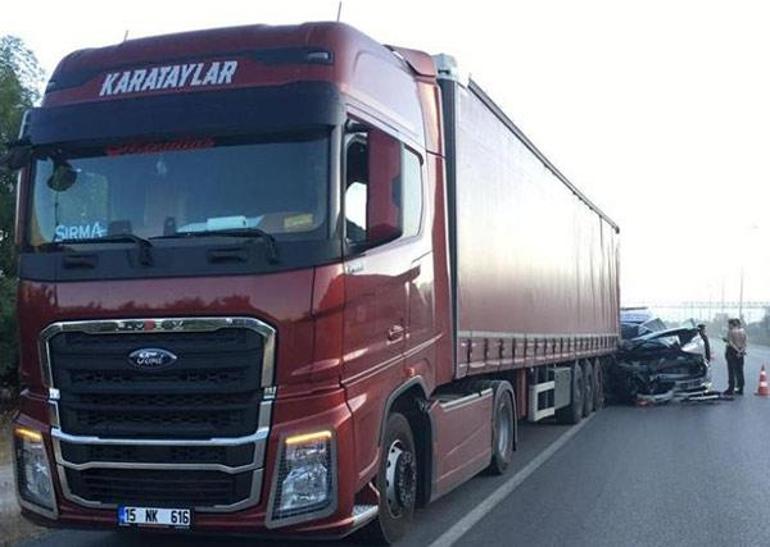 Burdur'dan Antalya yönüne giden Mehmet Emre idaresindeki 34 GPK 636 plakalı cip, Murat Bedir idaresindeki 15 NK 616 plakalı TIR'a arkadan çarptı.