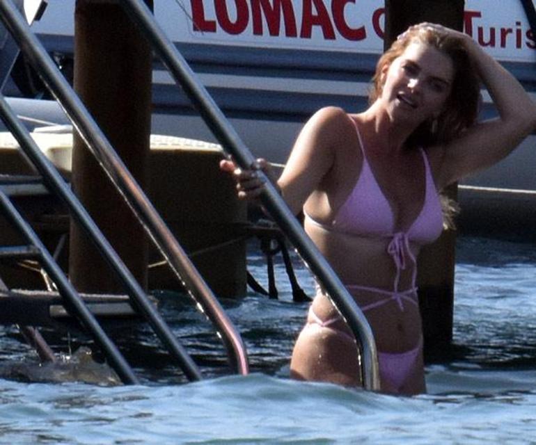39 yaşındaki ünlü isim, pembe bikinisi ve fit haliyle dikkat çekti. Bir süre şezlongda uzanan oyuncu, sıcak havaya daha fazla dayanamayarak, denize girmeye karar verdi.