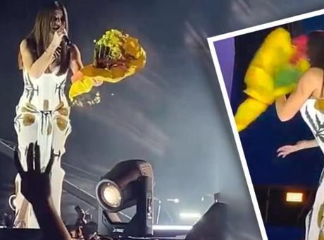 43 yaşındaki popçu, Gaziantep'te verdiği konser sırasında izleyicilerden suratına önce çiçek sonra telefon fırlatılmasının ardından neye uğradığını şaşırdı.