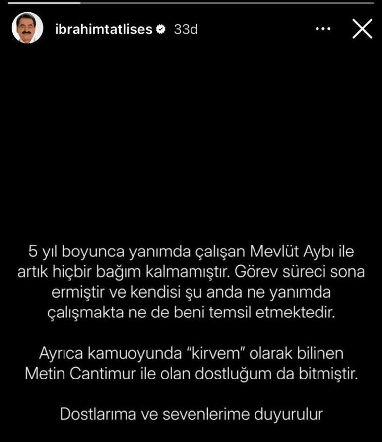 Son Haberler: İbrahim Tatlıses sosyal medyadan açıkladı! Mevlüt Aybı ve Metin Cantimur ile bağım kalmadı