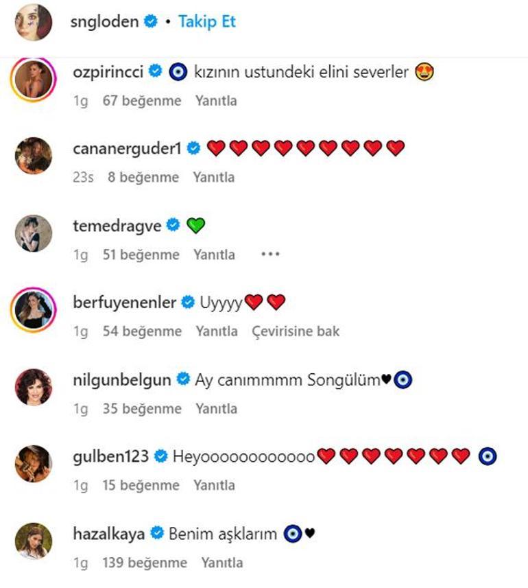 Güzel oyuncunun kısa sürede 52 bine yakın beğeni alan bu fotoğrafına; başta Ezgi Mola, Özge Özpirinçci, Hazal Kaya ve Berfu Yenenler gibi birçok ünlüden yorum yağdı.