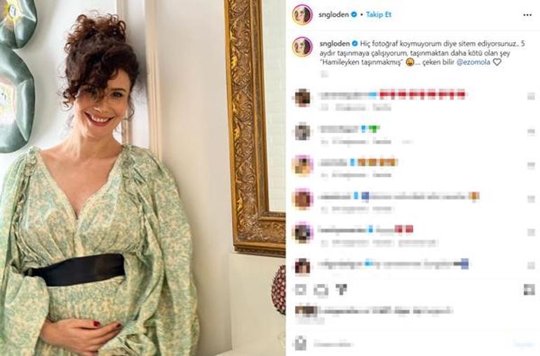 Bir eliyle karnını tuttuğu karesine; "Hiç fotoğraf koymuyorum diye sitem ediyorsunuz... 5 aydır taşınmaya çalışıyorum, taşınmaktan daha kötü olan şey hamileyken taşınmakmış... Çeken bilir" notunu yazan Öden, kendisi gibi hamile olan arkadaşı Ezgi Mola'yı etiketledi.