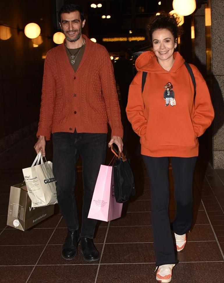 Çift, önceki akşam Nişantaşı'nda el ele görüntülendi. Muhabirlerlle ayaküstü sohbet eden oyuncu, "Alışveriş yaptık, bir şeyler atıştırdık, şimdi de eve geçiyoruz. Hamileliğim gayet güzel gidiyor, her şey yolunda. Çok mutlu ve heyecanlıyım" dedi.