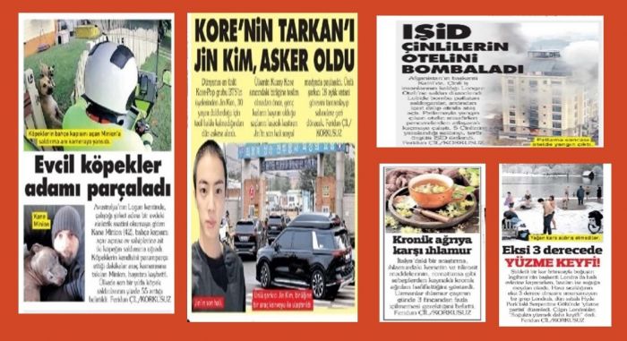 “Kronik ağrıya karşı ıhlamur” (İtalya), “Evcil köpekler adamı parçaladı” (Avustralya), “IŞİD Çinlilerin otelini bombaladı” (Afganistan), “Kore’nin Tarkan’ı Jin Kim, asker oldu” (G. Kore), “Eksi 3 derecede yüzme keyfi” (İngiltere) başlıklı bu haberlerin tümü de farklı ülkelerden yazılmıştı. Üstelik de haberlerin hiçbirinde kaynak gösterilmiyordu; sanki o haberleri Korkusuz muhabiri kendisi üretmiş gibi sunuluyordu okura.