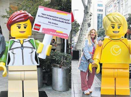 Fenerbahçe’de oynayan milli voleybolcu Eda Erdem’in, “Sen yapamazsın diyenleri bloklarınla durdurabilirsin” sözleri yer aldı. Erdem, “Yapmak istediğimiz her şey için sadece kendi gücümüze ve tutkuya ihtiyacımız var, geri kalan her şeye blok koyup ilerleyebiliriz” dedi. Doğa Rutkay’ın ise, “Tek bir rolün yok hayatta, istersen her rol senin” sözleri yer aldı. Dört kadın tarafından yazılan ve Lego markasının ikonik minifigürleri tarafından taşınan cümleler, 7 Kasım Salı akşamına kadar Nişantaşı sokaklarında sergilenecek. ● MESUT YILMAZ