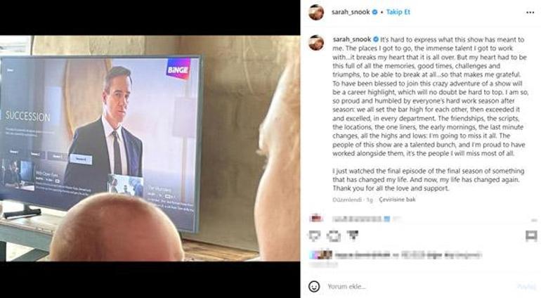 Succession'ın final bölümünü, kucağında yeni doğmuş bebeğiyle birlikte izleyen oyuncu, 303 bin takipçisinin bulunduğu Instagram sayfasından yaptığı paylaşımına duygusal bir not düştü. Sözlerine, ''Bu gösterinin benim için ne anlama geldiğini ifade etmek zor'' diye başlayan oyuncu, çalışma arkadaşlarına duyduğu minneti de dile getirerek şu satırlara yer verdi: