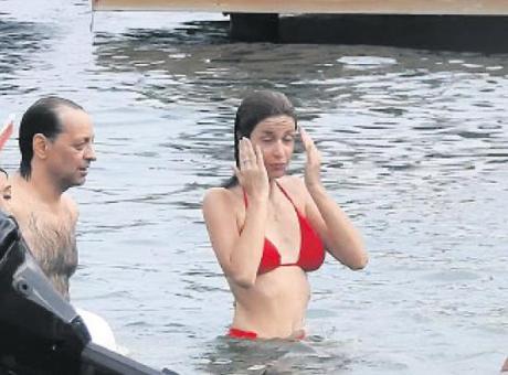 Aile, gün boyu deniz keyfi yaptı. Ural, fit fiziğiyle dikkat çekerken, çift birbirine su şakası da yaptı. -KAMİL SÜMER
