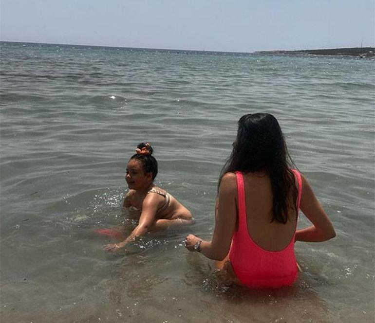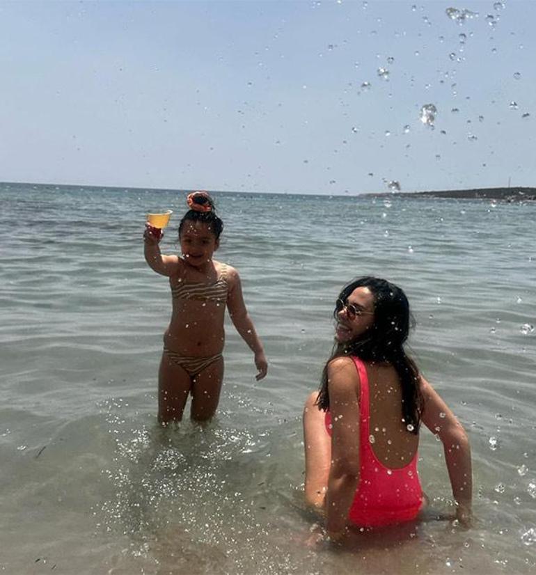 Masmavi denizin ve güneşin keyfini doyasıya çıkaran 38 yaşındaki güzel, gün boyunca kızı Mihran Ela ile kumsalda oyunlar oynarken, mutluluğu yüzüne yansıdı.